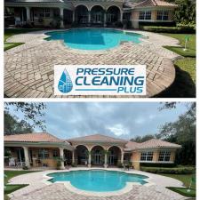 We pressure washed this pool deck to remove mold and prevent anyone from a slip and fall. Regularly cleaning your pool deck and driveway also protect pavers from permanant stains or damage.